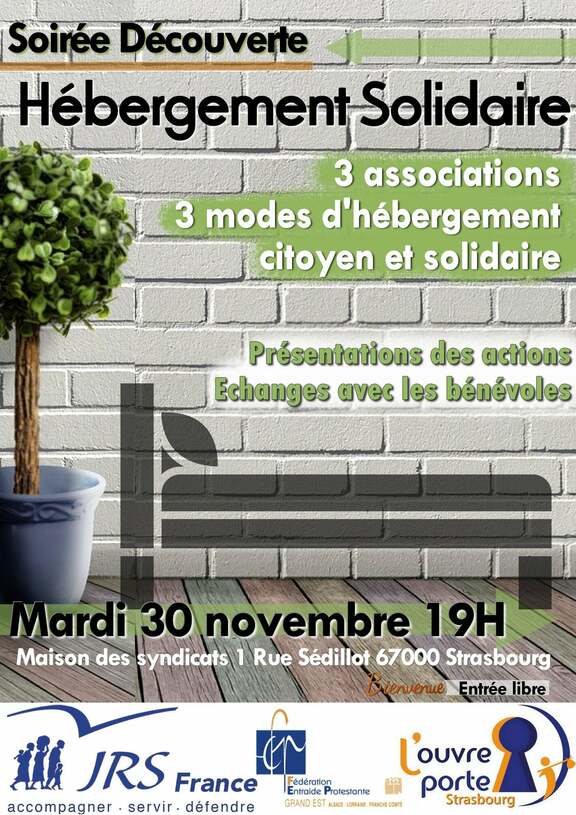 Venez découvrir trois solutions d'hébergement citoyen qui se développent près de Strasbourg; Rencontrez et échangez avec les associations et leurs bénévoles.