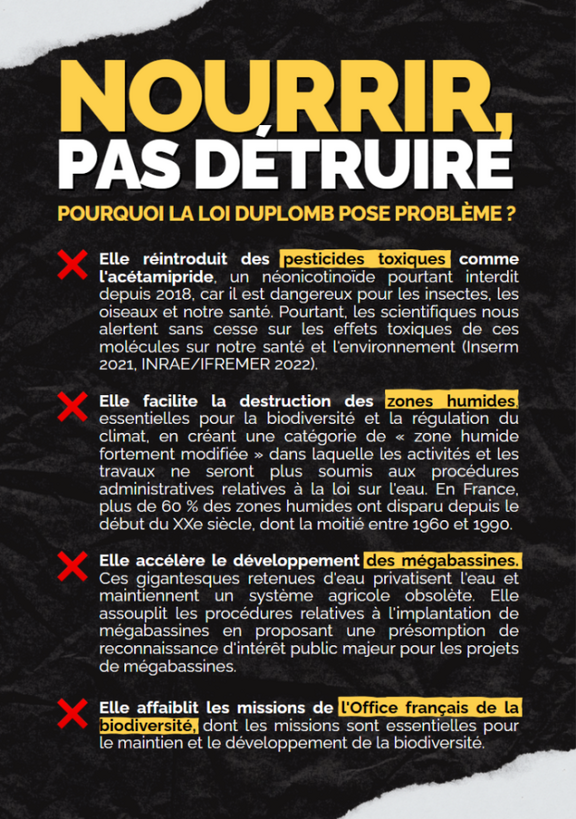 Contre la Loi DUPLOMB : Mobilisation nationale décentralisée
