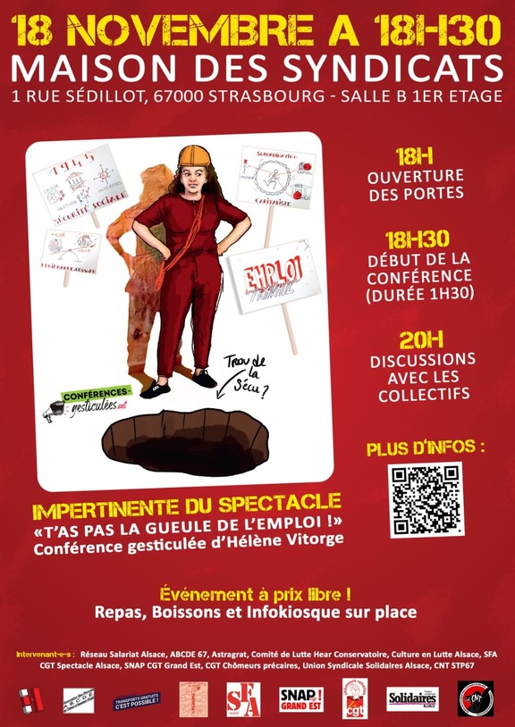 Je suis artiste interprète, je vis de mon métier et à ce titre j'ai accès au régime chômage des intermittents du spectacle. Grâce au SFA (CGT-spectacle) et à la CIP (coordination des intermittents et précaires), j'ai réalisé que cette suspicion de fraude dépassait de loin ma petite personne, qu'une chasse était menée contre les chômeur·es, contre la continuité de salaire en cas de perte d'emploi, et contre le cumul emploi-chômage, caractéristique du régime intermittent. On le sait bien, nous, usagers de la sécurité sociale et de l'assurance chômage, nous sommes responsables du soi-disant »trou de la sécu » ! J'ai donc été propulsée dans l'histoire de la Lutte des classes, les conquêtes des travailleur·es, la création de la Sécurité Sociale, et l'histoire spécifique de l'intermittence du spectacle.